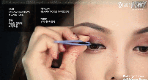 Step2:为了更好的拉长眼型,在眼睛上贴上眼尾加重的自然款假睫毛。