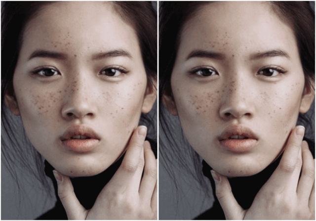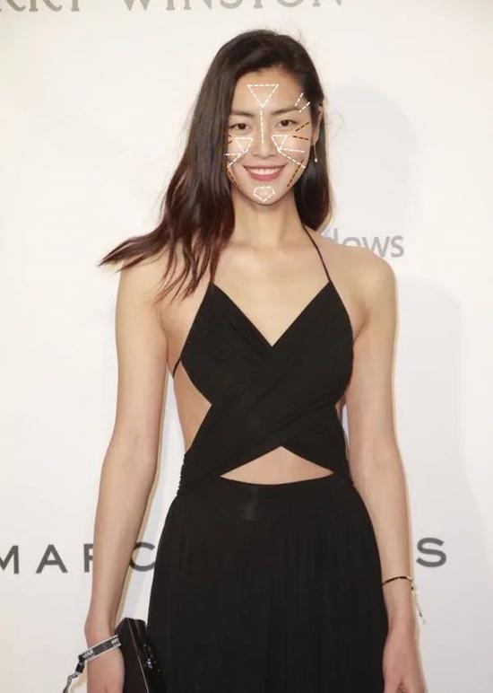 编辑用刘雯的图来举个栗子:在颧骨外凸脸型上的修饰,