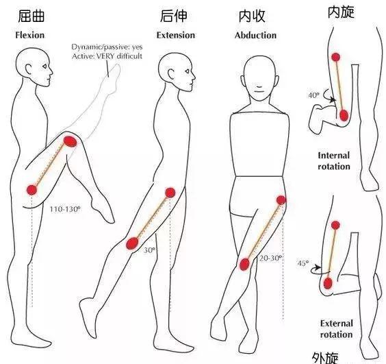 而开髋是指髋关节向各个方向运动的能力,注意这里的各个方向,向内、向外、向前、向后都是开髋的范围,包括了前面闭髋所说的内收和内旋。