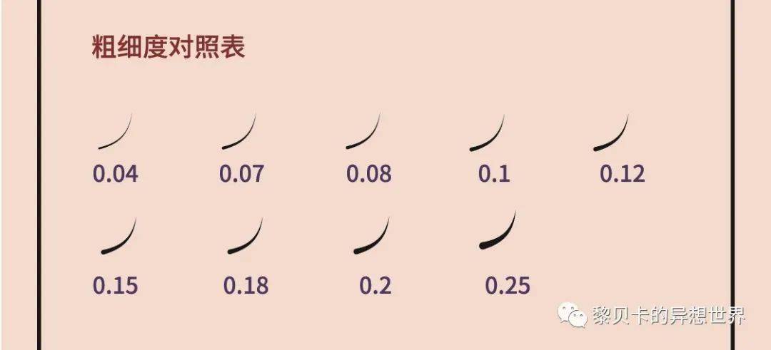 很多店里最细的假睫毛只有0.04mm,最粗的0.25mm。美睫师一般会推荐0.05mm—0.15mm左右的,相对自然、舒服。
