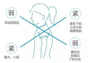 主要是由于颈部后侧以及胸部肌肉僵硬紧张,后上背部肌肉无力被拉长形成的。